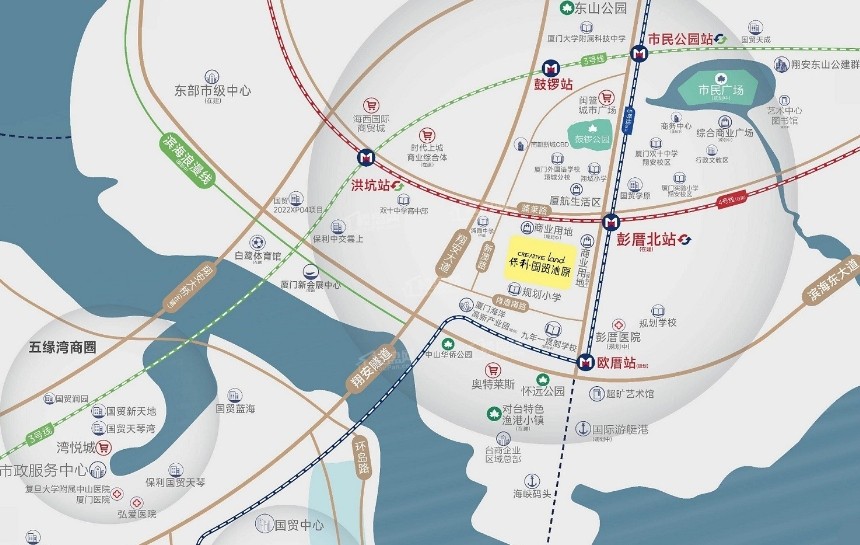 项目坐落于翔安隧道口近岛一线,战略位置得天独厚。距离在建的4号线以及规划中的5号线换乘站彭厝北站很近。业主自驾出行,几脚油门便能轻松通过翔安隧道实现跨岛,全程零红绿灯,出行高效便捷。4号线建成后,可快速连通翔安新机场、厦门北站等重要交通枢纽,与3号线换乘还能直达岛内核心区域;未来5号线开通,将进一步加强与岛内的无缝连接。